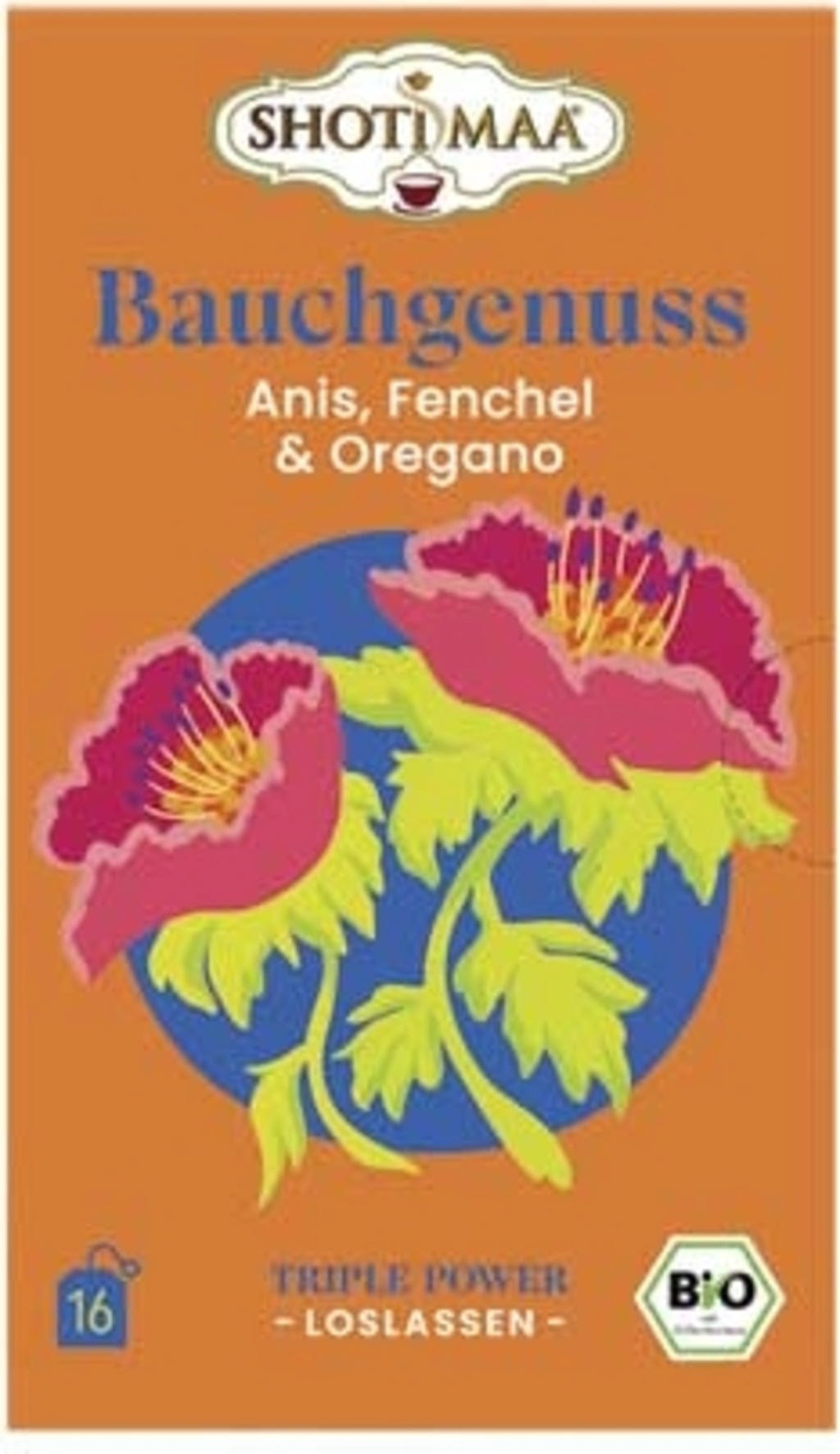 Shoti Maa Bio čaj požitek pro břicho - anýz, fenykl a oregano, 16 čajových sáčků (32 g)