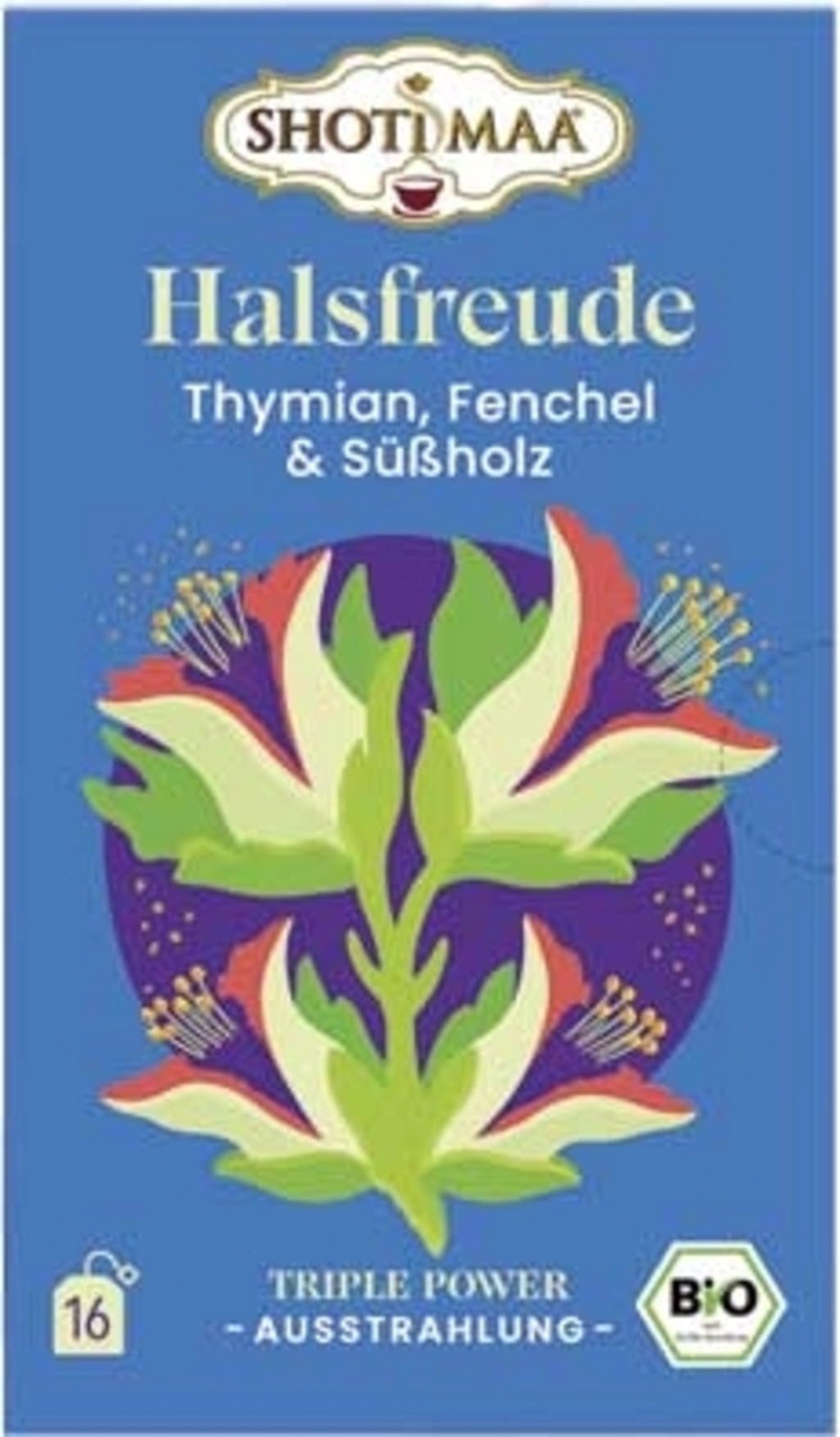 Shoti Maa Bio čaj radost pro hrdlo - tymián, fenykl a lékořice, 16 čajových sáčků (32 g)