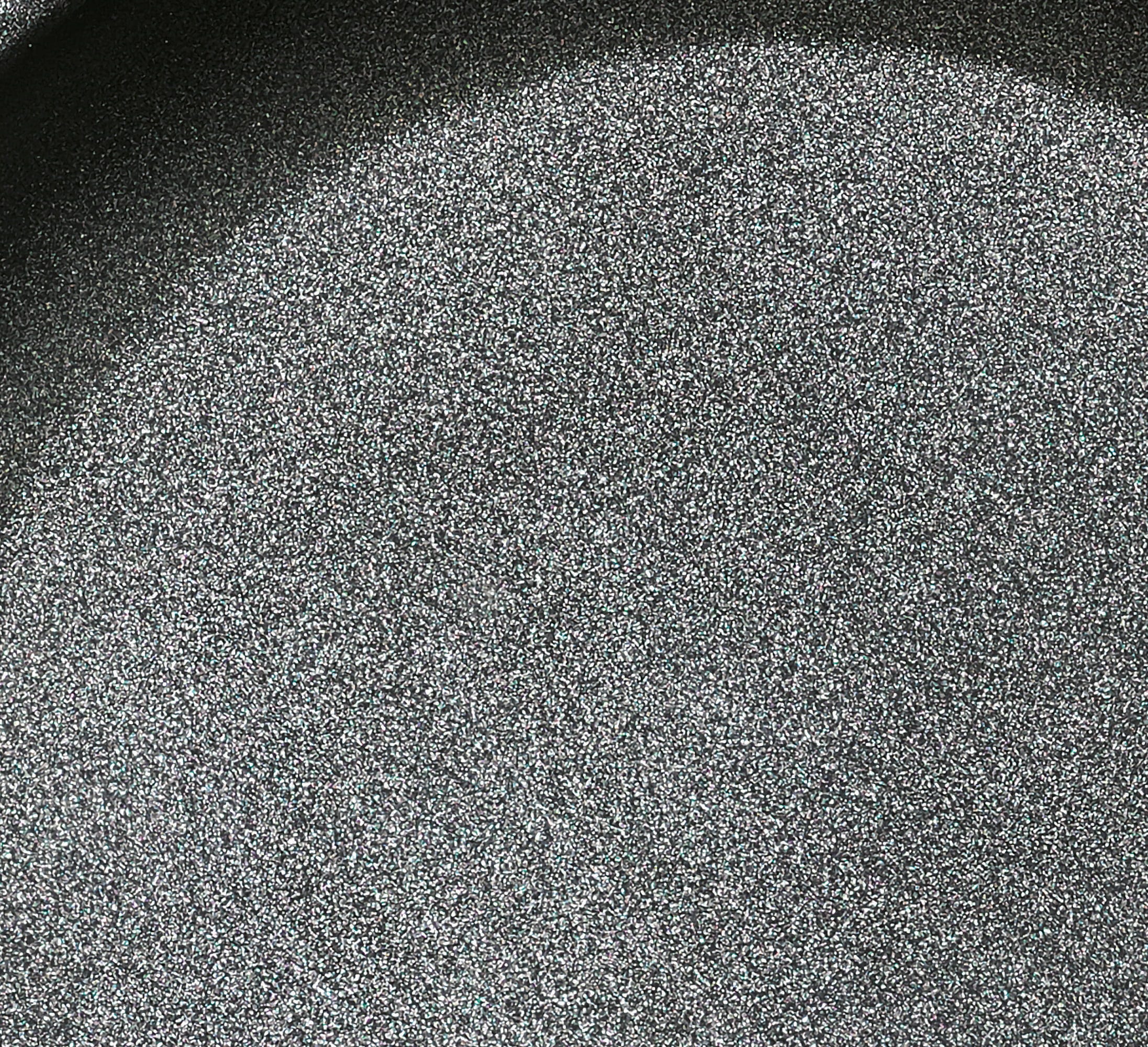 - Odolná povrchová úprava s horskými krystaly: 3-vrstvý nepřilnavý povrch se švýcarskými horskými krystaly je tak robustní, že ani kovové obracečky nejsou problémem