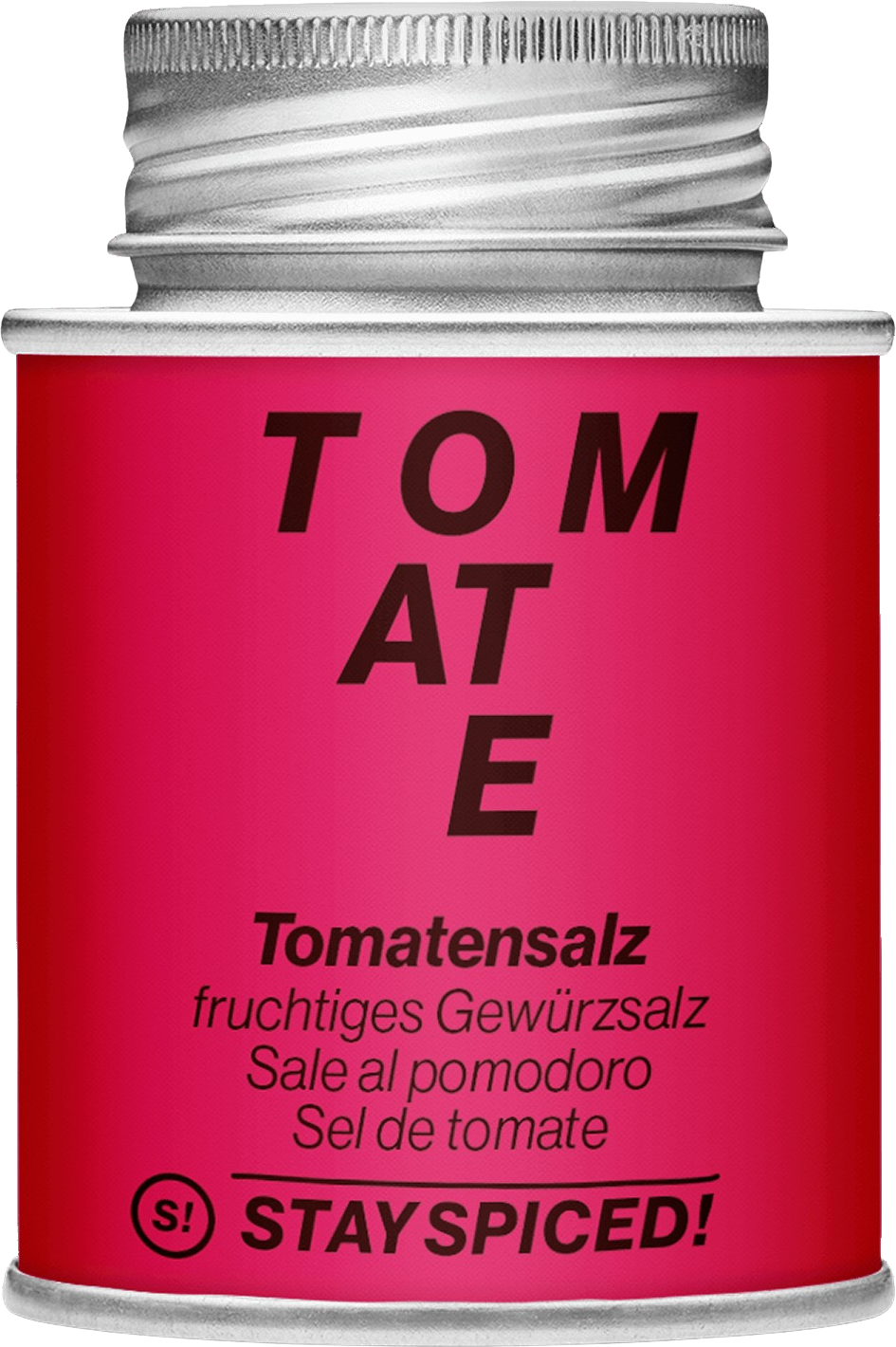 Drobná mořská sůl a intenzivní rajčatový prášek se setkávají se sladěnou směsí koření rozmarýnu, bazalky, fenyklu a skořicového květu. Lehká sladkost z celeru, čerstvého zázvoru a aromatické pomerančové kůry dodává kořeněné soli velmi speciální chuť. Ideální pro širokou škálu rajčatových pokrmů. Vyzkoušejte rajčatovou sůl například s rajčaty a mozzarellou, rajčatovým salátem a rajčatovými omáčkami.