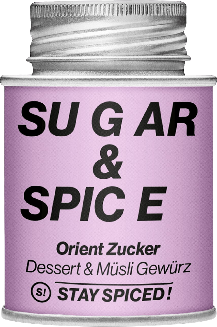 Sugar & Spice - orientální od Stay Spiced! kombinuje vzrušující orientální chutě, např. kardamom, skořici, nové koření a muškátový oříšek. Ty dodávají cukru kořeněné a ovocné tóny.