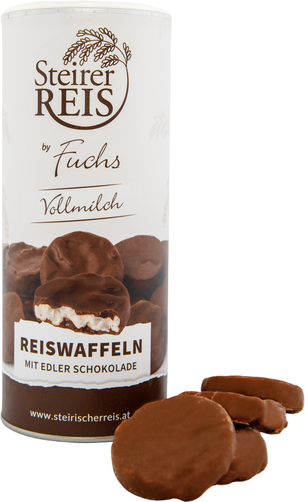 SteirerReis Fuchs Rýžové vafle s čokoládou v dóze, plnotučná mléčná čokoláda (120 g)