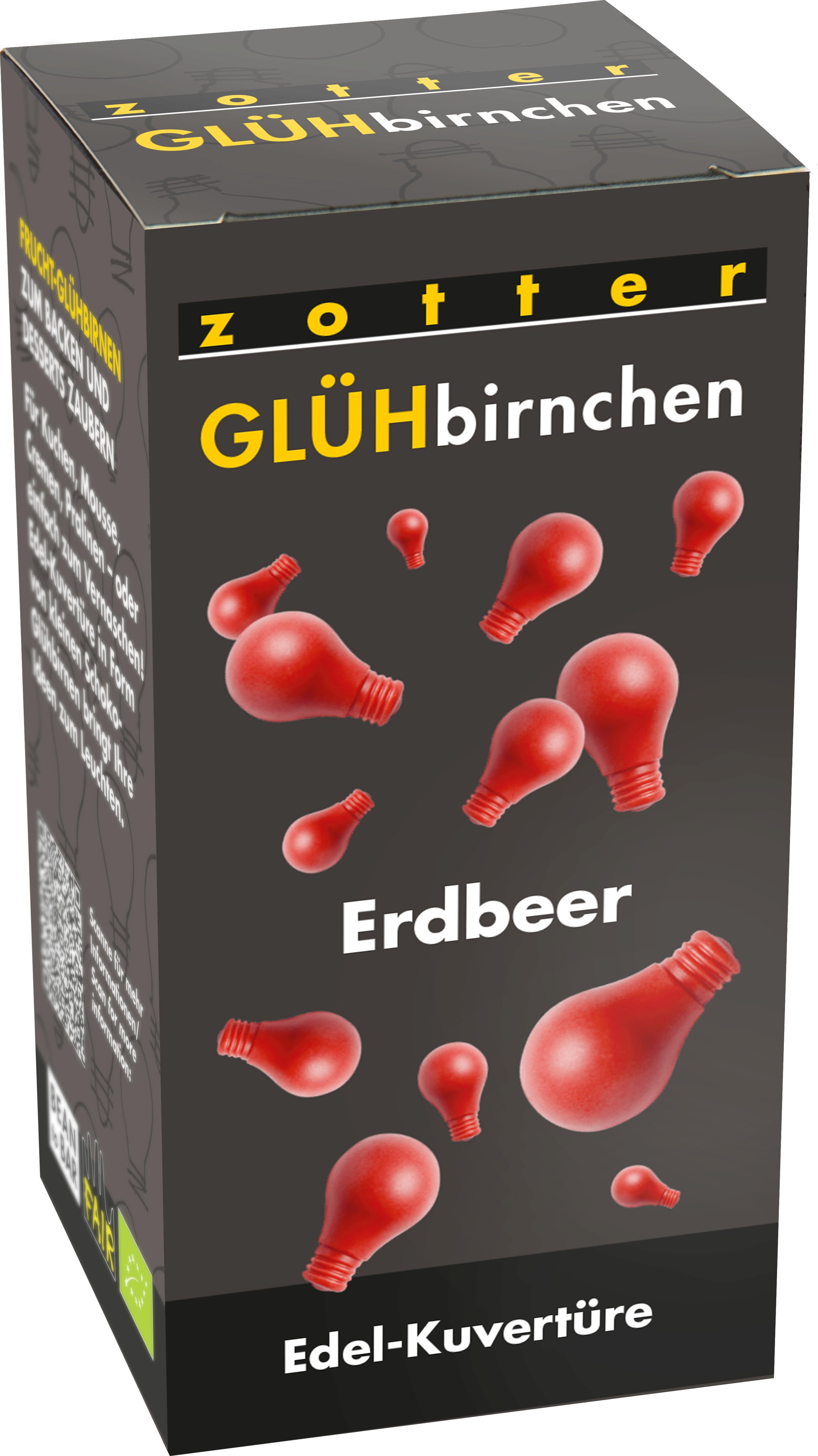 Malé růžové žárovky vyrobené z jahodové couverture, jejichž skvělá barva přirozeně vychází z vysokého obsahu ovoce, a které chutnají úžasně ovocně a přirozeně po jahodách. Skvěle se hodí na pečení, temperování čokolády i na svačinku.