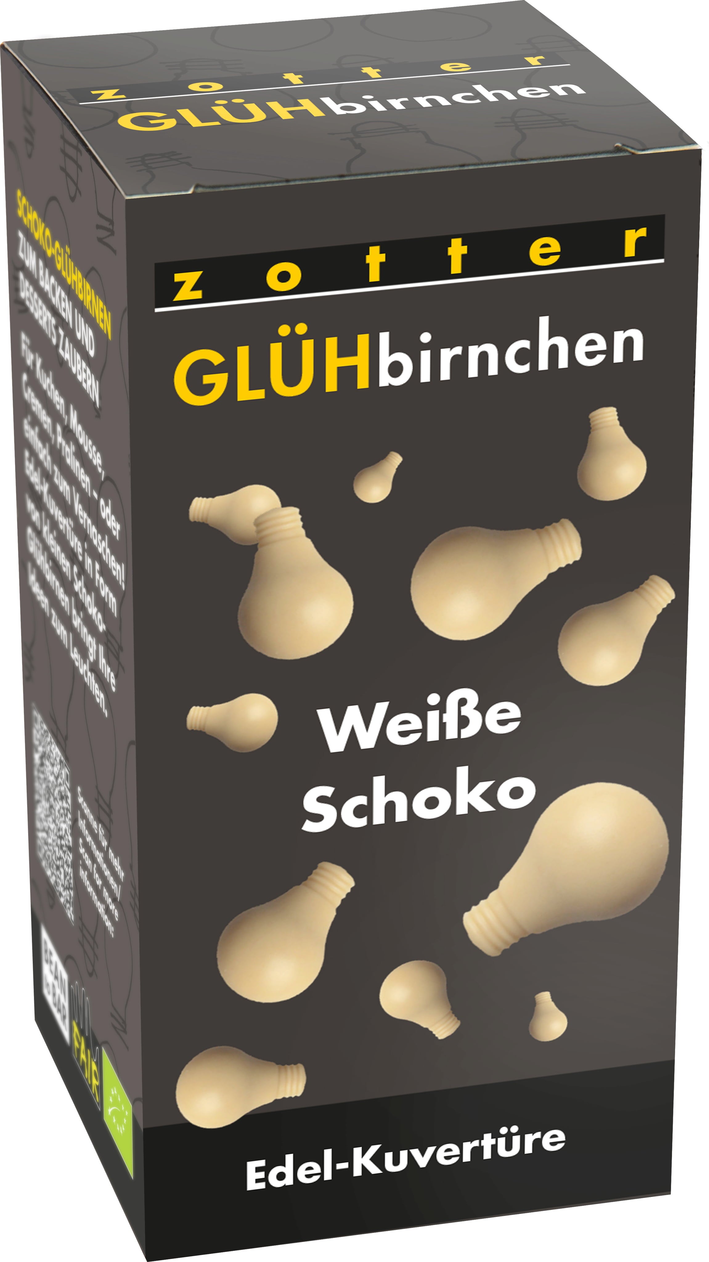 Lahodná bílá couverture ve formě žároviček, která se prakticky dávkuje a temperuje. Vyznačuje se dobrým táním. Vysoká kvalita je zaručena složením produktu z 30% čistého kakaového másla, bio horského mléka, pravé vanilky, pravé vanilky a surového a celého třtinového cukru. Ideální také jako dekorace.
