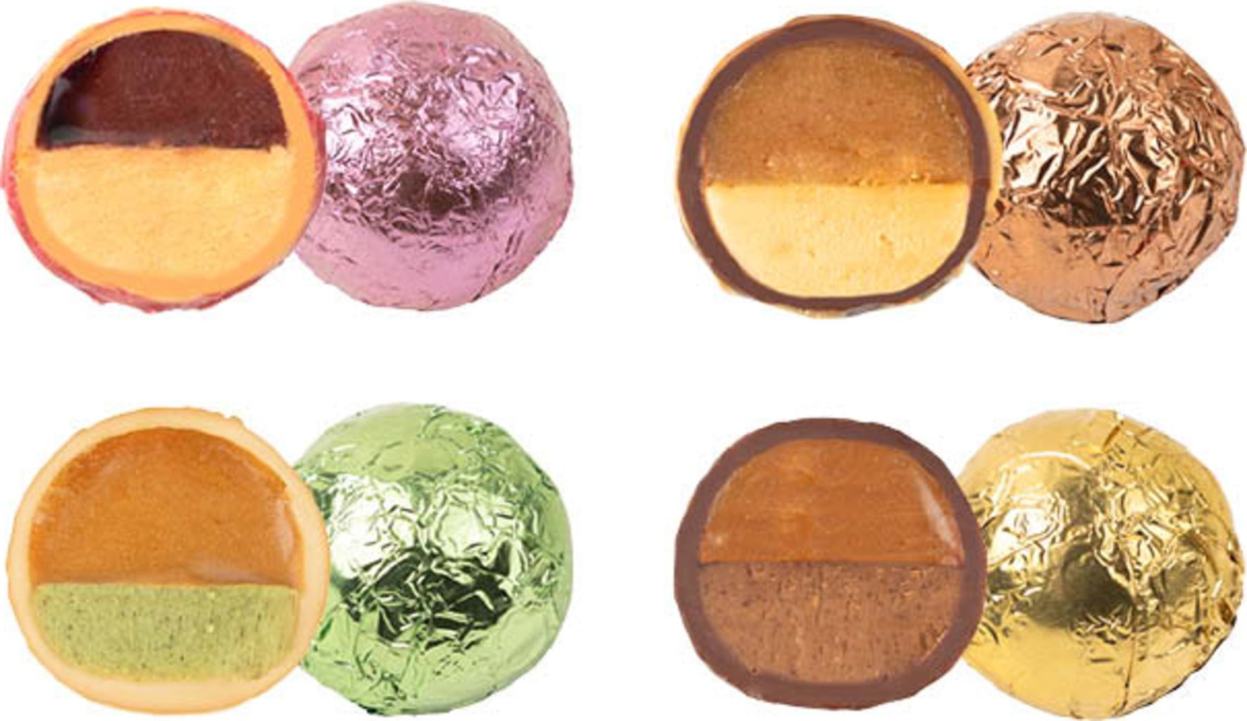 Nechte se těmito pralinkami překvapit – karamel tu dostává nový barevný a vzrušující kabát! Tyto velké pralinkové koule přitáhnou pozornost a jsou ideálním dárkem.
