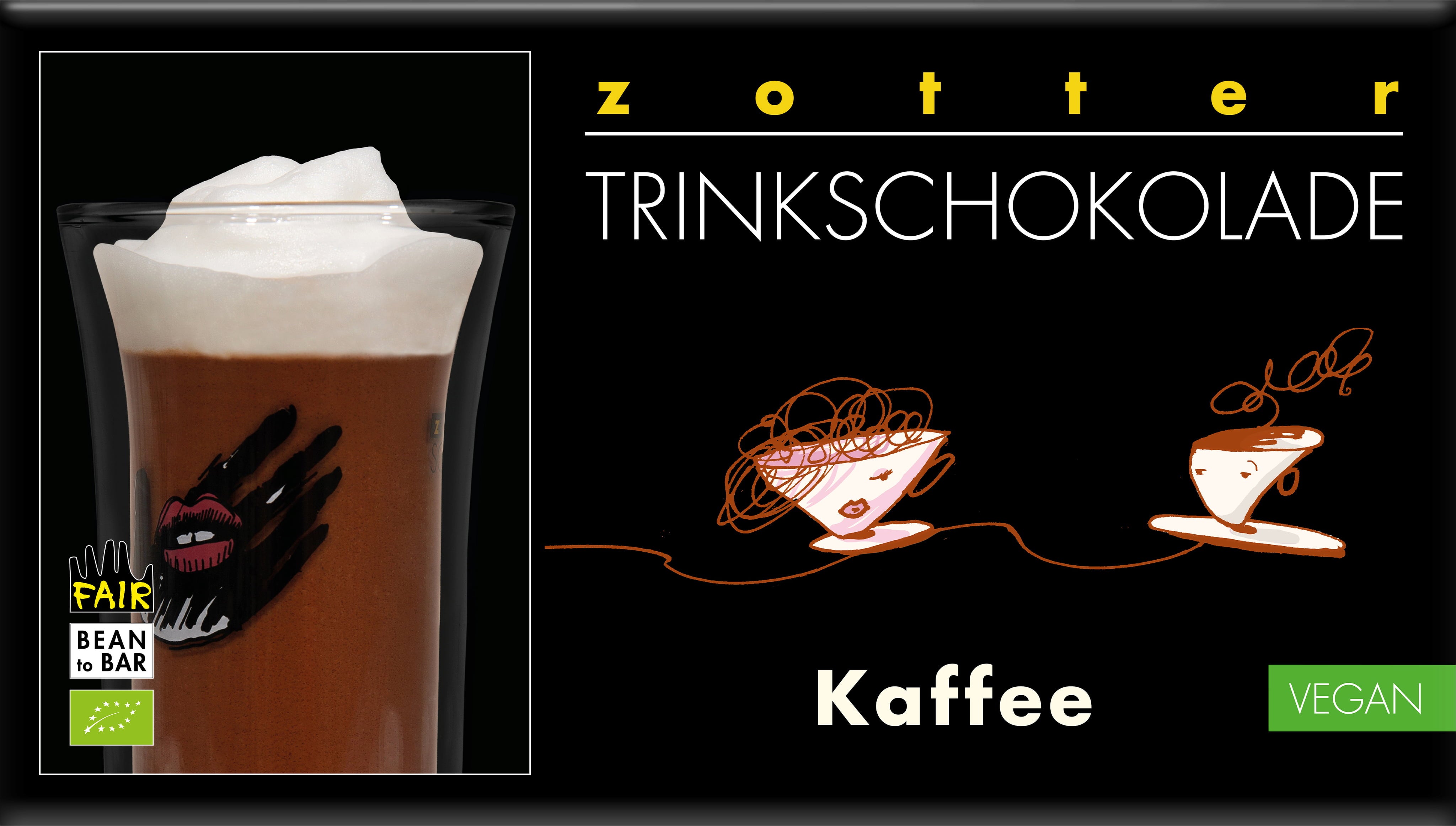 Tato lahodná čokoláda má vysoký obsah kávy, jež je vyrobená z FairTrade kávových zrn z bio zemědělství a která byla pražena a mleta ve vlastní pražírně kávy Zotter. Obsah kávy zhruba odpovídá dvojitému espressu. Horká čokoláda je doplněna čistým kakaovým máslem a třtinovým cukrem. Je nejen bezlepková, ale také veganská a přesvědčí Vás svou výraznou kávovou chutí bez ohledu na to, zda ji připravíte s kravským mlékem nebo veganskou mléčnou alternativou.