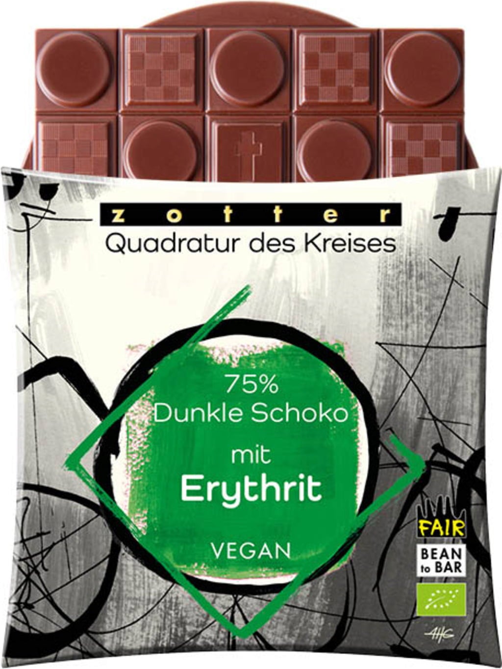 -                         Zotter Schokolade Bio kvadratura kruhu 75% hořká čokoláda s erythritolem Svačinka bez špatného svědomí! 110,00 Kč(1 571,43 Kč / kg)
