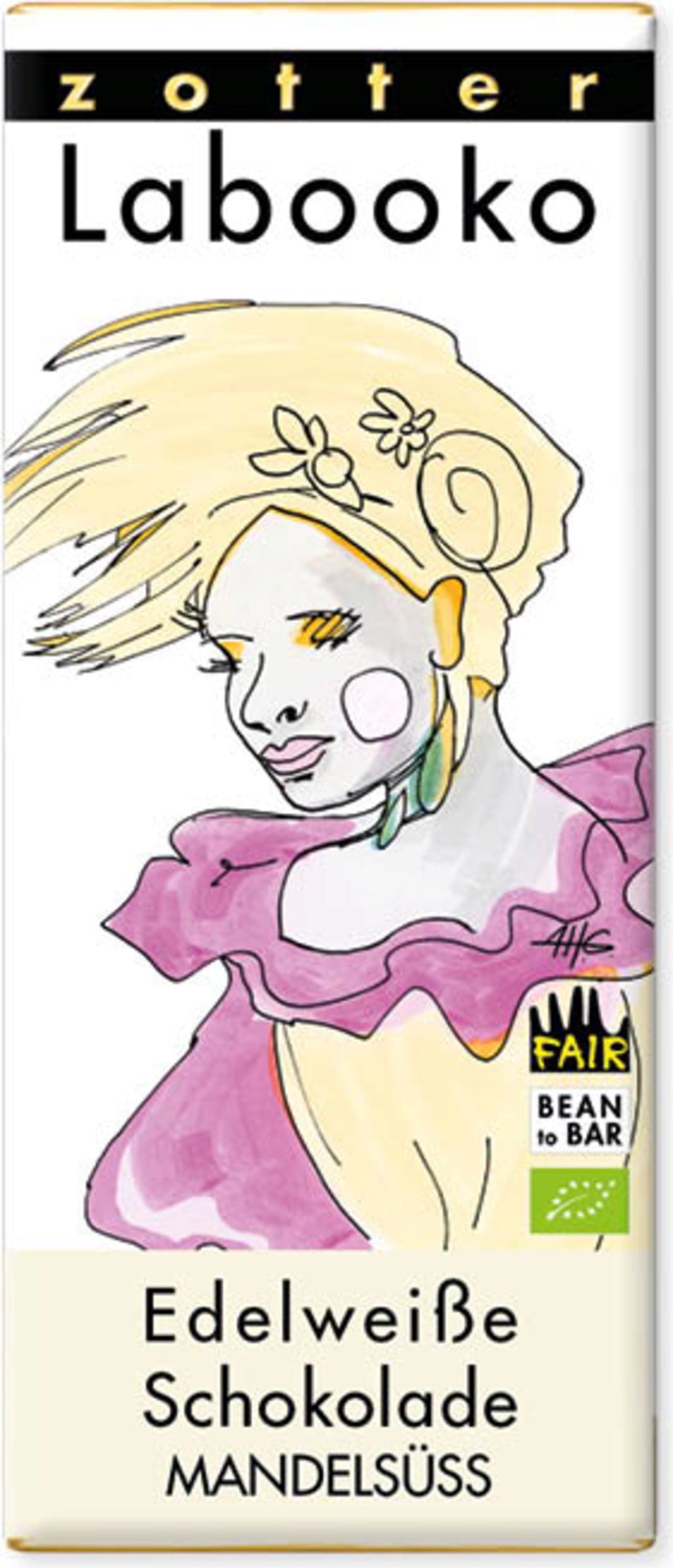 Zotter Schokolade Bio Labooko bílá čokoláda s mandlemi, 70 g
