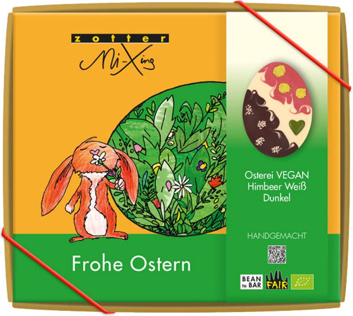 Zotter Schokolade Bio MiXing velikonoční vajíčko s malinovou, bílou a tmavou čokoládou, 100 g