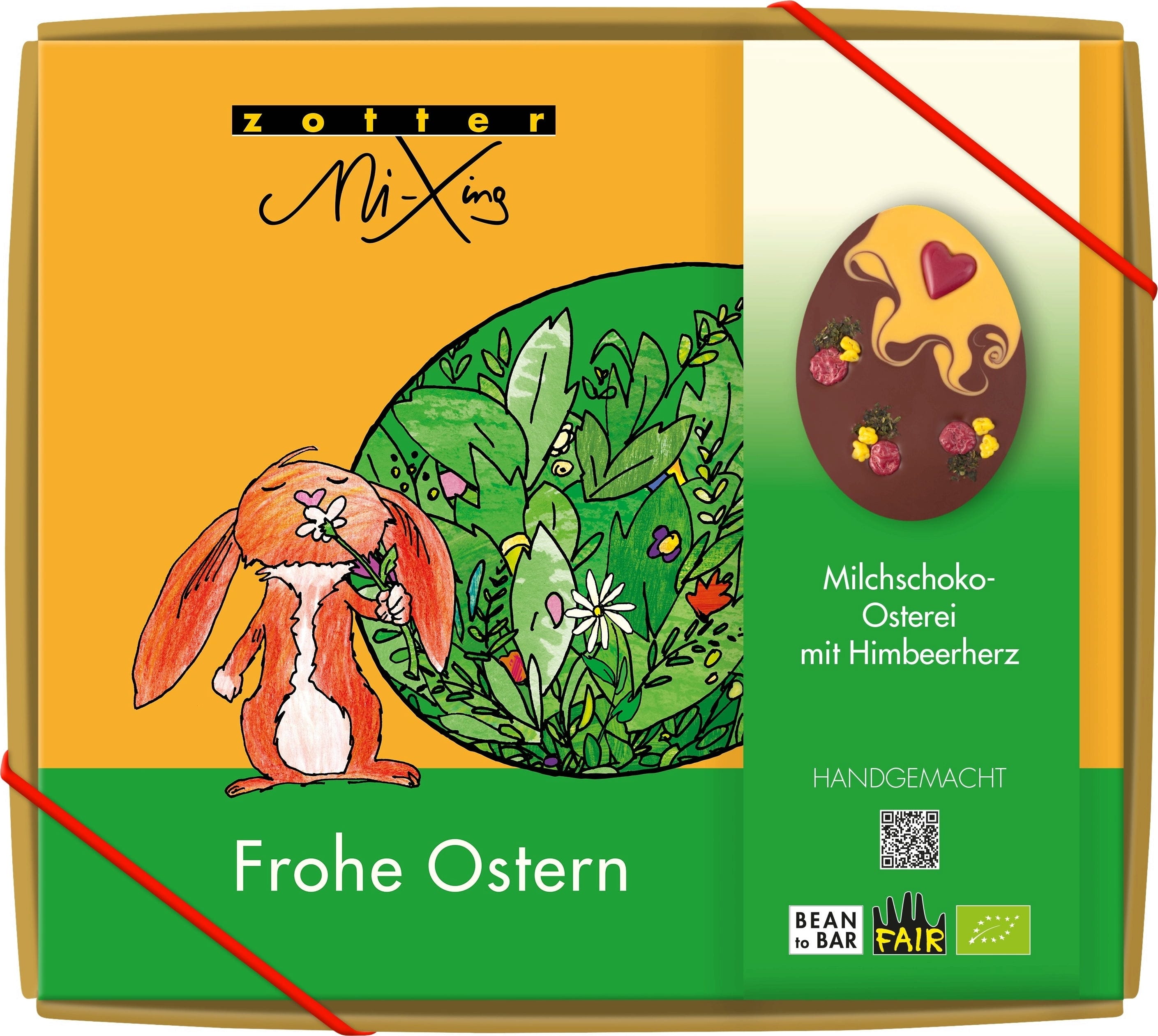 Bio MiXing velikonoční vajíčko z mléčné čokolády s malinovým srdcem od Zotter spojuje klasické i ovocné tóny v láskyplně vytvořené čokoládové kreaci, ideální jako výjimečná pozornost v období Velikonoc.