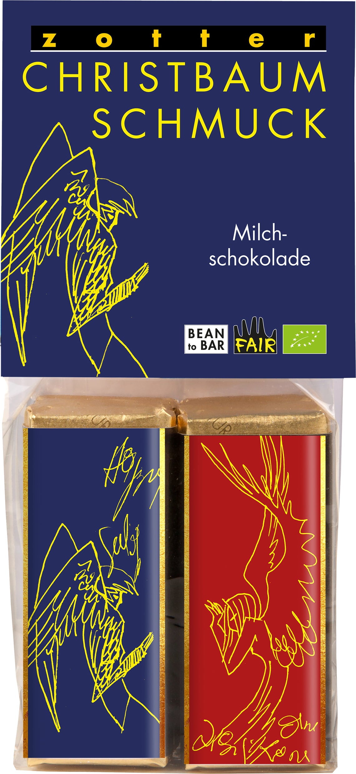 Zotter Schokolade Bio Nashis ozdoby na vánoční stromeček z mléčné čokolády, 80 g