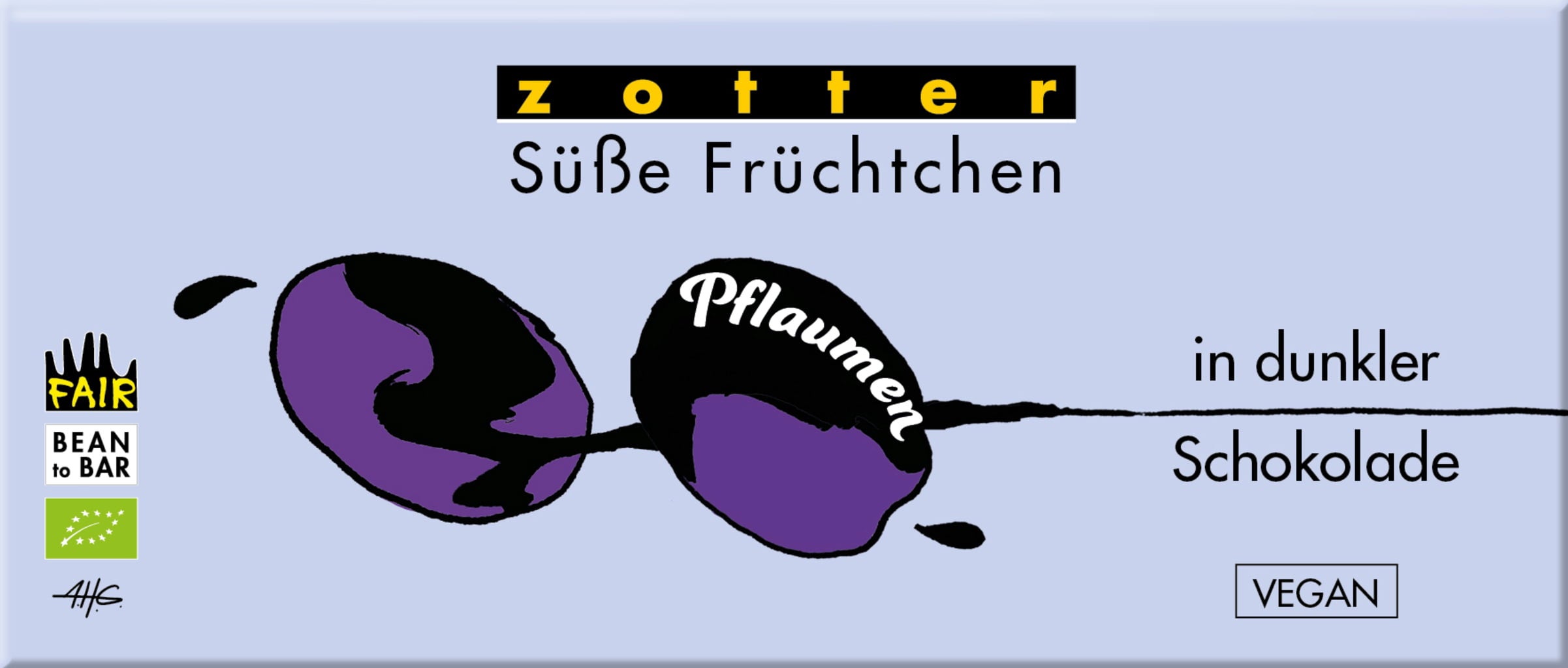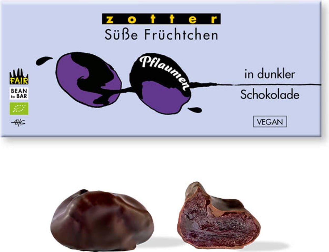 Zotter Schokolade Bio sladké švestky v hořké čokoládě, 80 g